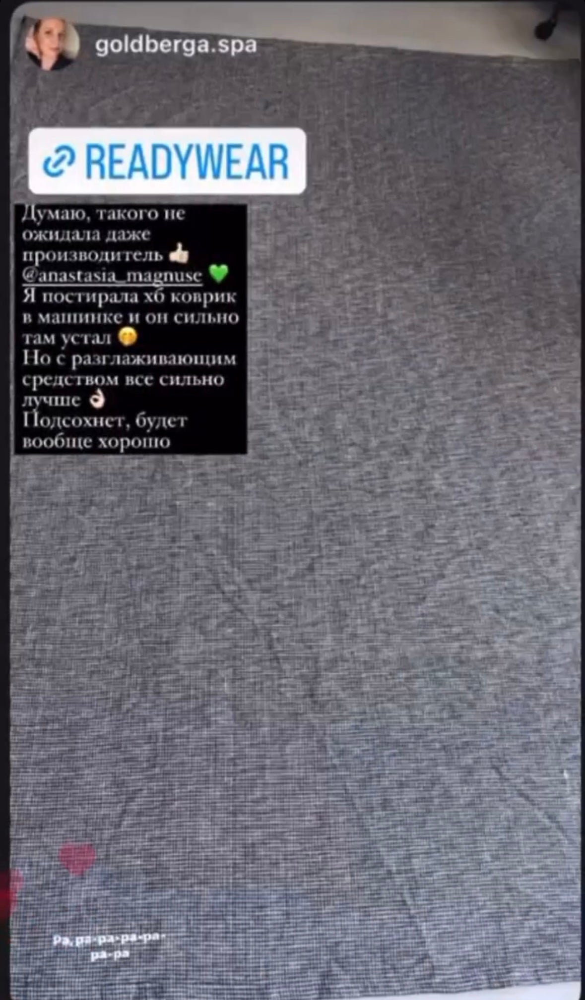 ReadyWear sprejs ir piemērots lielākajai daļai audumu, taču ir vērts atzīmēt, ka uz 100% sintētiskiem audumiem tas var nebūt efektīvs vai tiem, kuriem ir augsts sintētikas saturs. Pirms lietošanas pārbaudiet produkta piemērotību slēptā vietā, it īpaši zīda un viskozes audumiem.